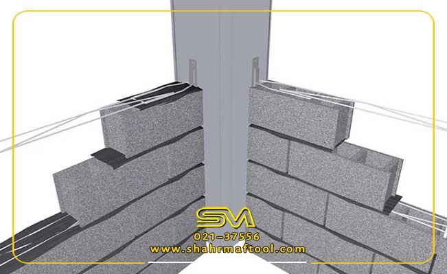 میلگرد بستر در داخل ملات و بین رجهای دیوار قرار میگیرد.